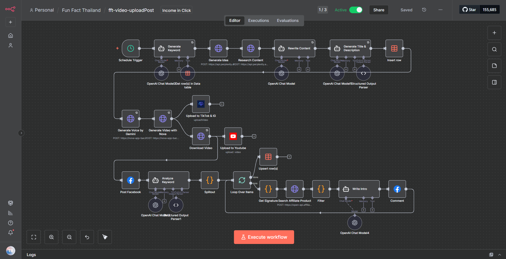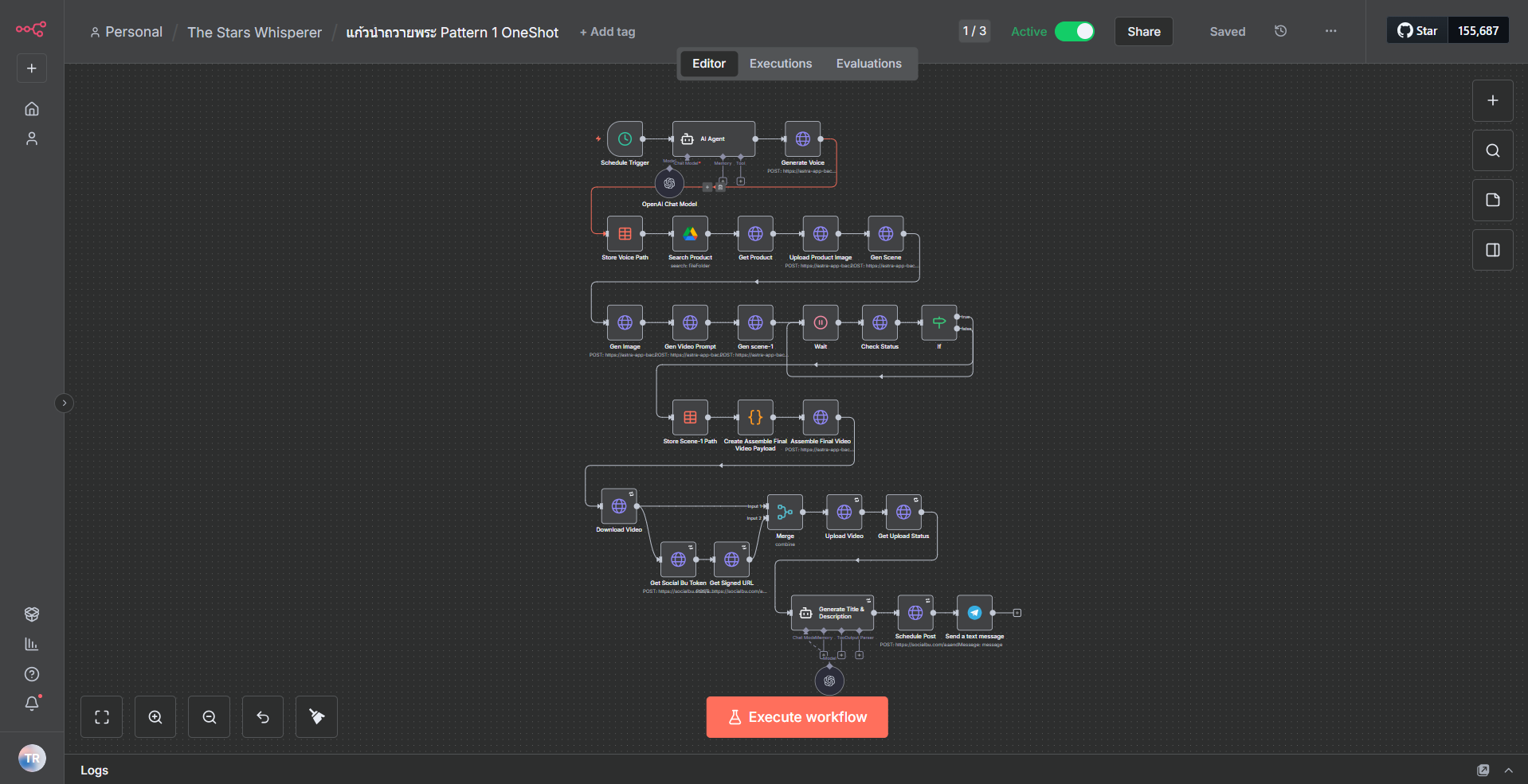 จากนั้น ผมก็สร้าง automation workflow แรกขึ้นมาเชื่อมต่อกับ Nova เพื่อให้การทำคลิปสั้นโพสต์ลง platform ต่างๆเป็นไปอย่างอัตโนมัติ