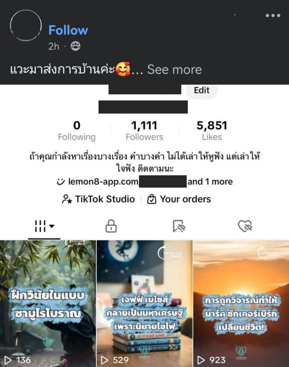 และ platform ที่ผมชอบทำมากที่สุดตอนนี้ มีอยู่ 2 ที่คือ tiktok กับ facebook ครับ