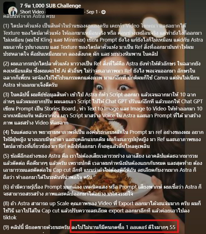 พอผลลัพธ์มันจึ้งขนาดนี้ ผมก็เปิดให้ชาวพันสับในกลุ่ม 7 วัน 1,000 SUB Challenge ได้เอา Astra ไปทำคลิปติดตะกร้าสร้างรายได้กันด้วย