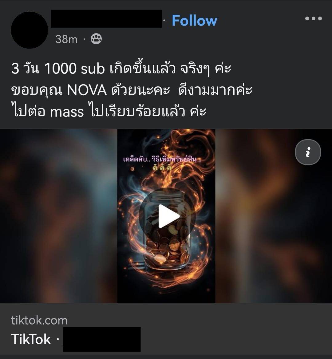 ในขณะเดียวกัน ผมก็สร้างกลุ่ม 7 วัน 1,000 SUB Challenge ขึ้นมาพาคนปั้นช่อง tiktok โดยมีเป้าหมายให้คนที่ไม่ใช่สายทำวิดีโอแบบผม ทำคลิปด้วย Nova AI ปั้นช่อง tiktok ให้ได้มีผู้ติดตามอย่างน้อย 1,000 คนภายใน 7 วันครับ